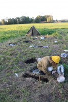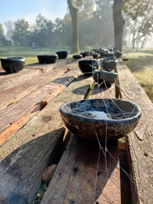 In search of an alternative history where Salaspils inhabitants, despite historical conditions, have been able to sometimes express themselves in art, excavations led by archaeologist A. Dimina were carried out. In the vicinity of Salaskalns estate (present-day Saulkalne town area), well-preserved vases and pots were found dating from the 14th–17th centuries. Examination of the dishes shows that they are made of local clay and painted with glazes probably bought from the Germans.